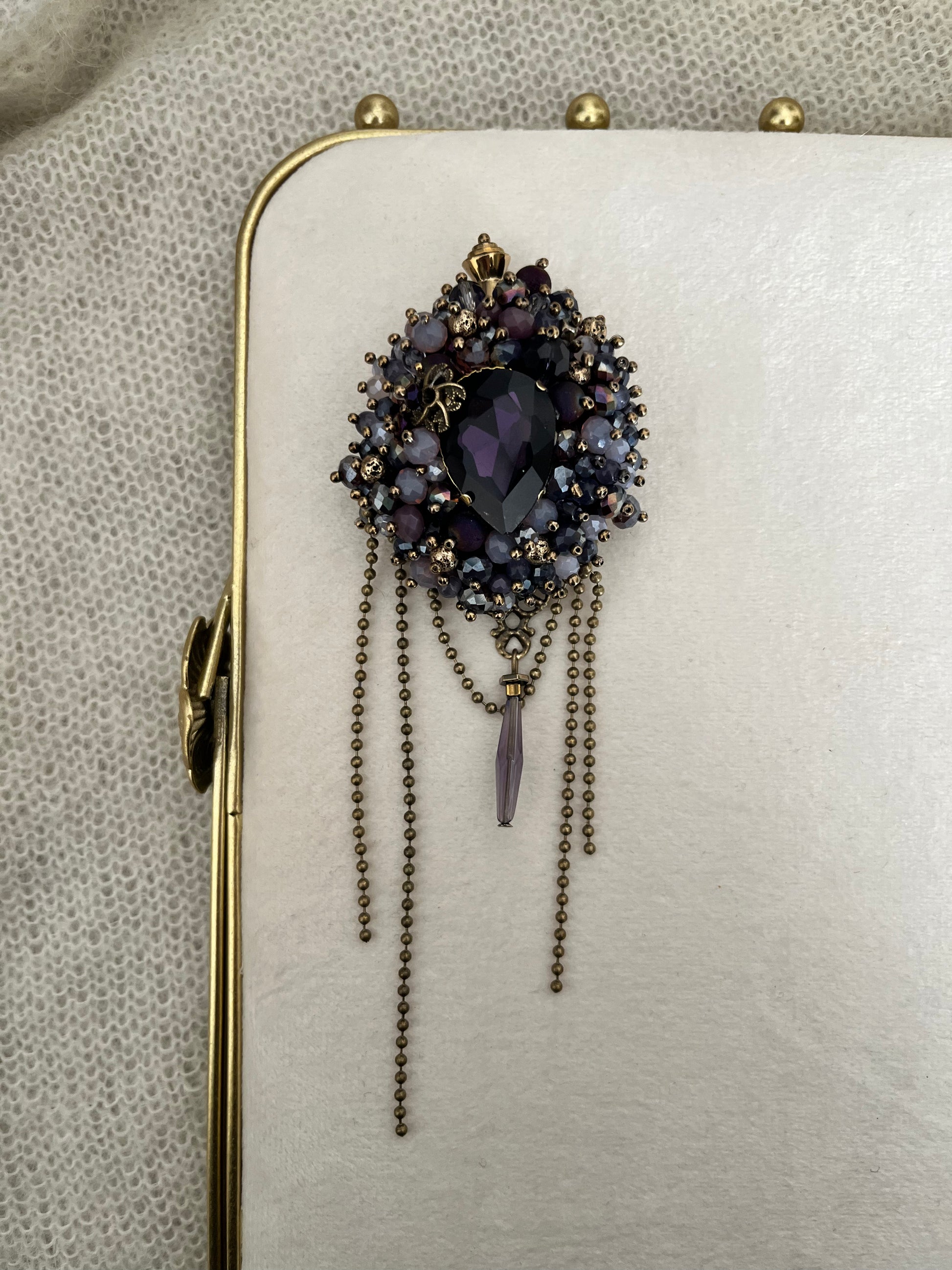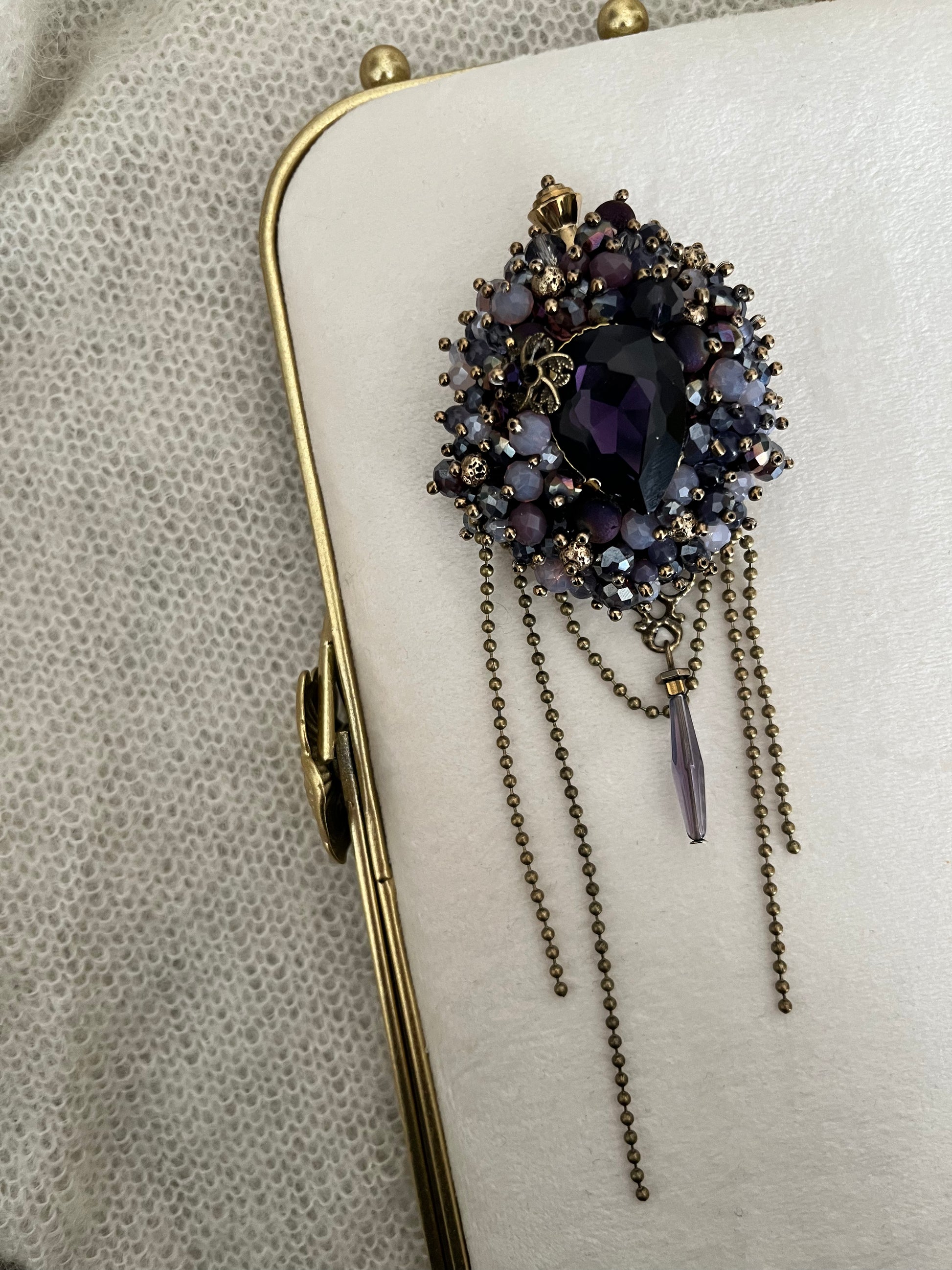 Sagė BOHEMA | violetinės spalvos autorinis rankų darbo papuošalas